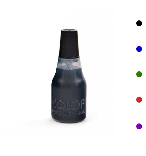 Colop tusz do pieczątek gumowych i polimerowych. Opakowanie 25 ml, kolory do wyboru: czarny, czerwony, niebieski, zielony i fioletowy.
