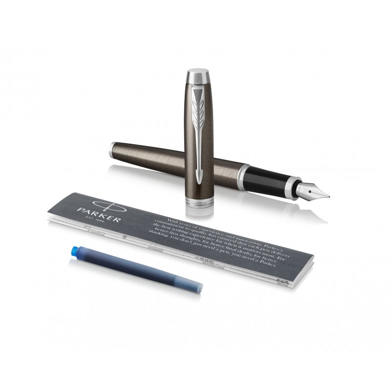 Nowe spojrzenie na klasyczne produkty z linii IM. Na szlifowanej, mosiężnej bazie położono kilkanaście warstw satynowego lakieru w kolorze espresso. Pierścienie chromowane i polerowane. Część przednia wykonana z połyskującego, czarnego tworzywa sztucznego. Pióro wieczne wyposażone jest w stalówkę z wysokiej jakości stali nierdzewnej typu F lub M. W piórze można korzystać z nabojów lub z tłoczka napełnianego atramentem (tłoczek nie dołączony).