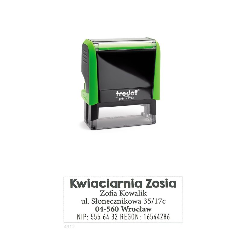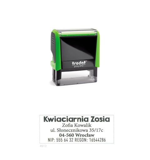 Kompaktowa pieczątka Trodat 4915 Maksymalny rozmiar odbicia 70x25 mm do 8 linijek tekstu.