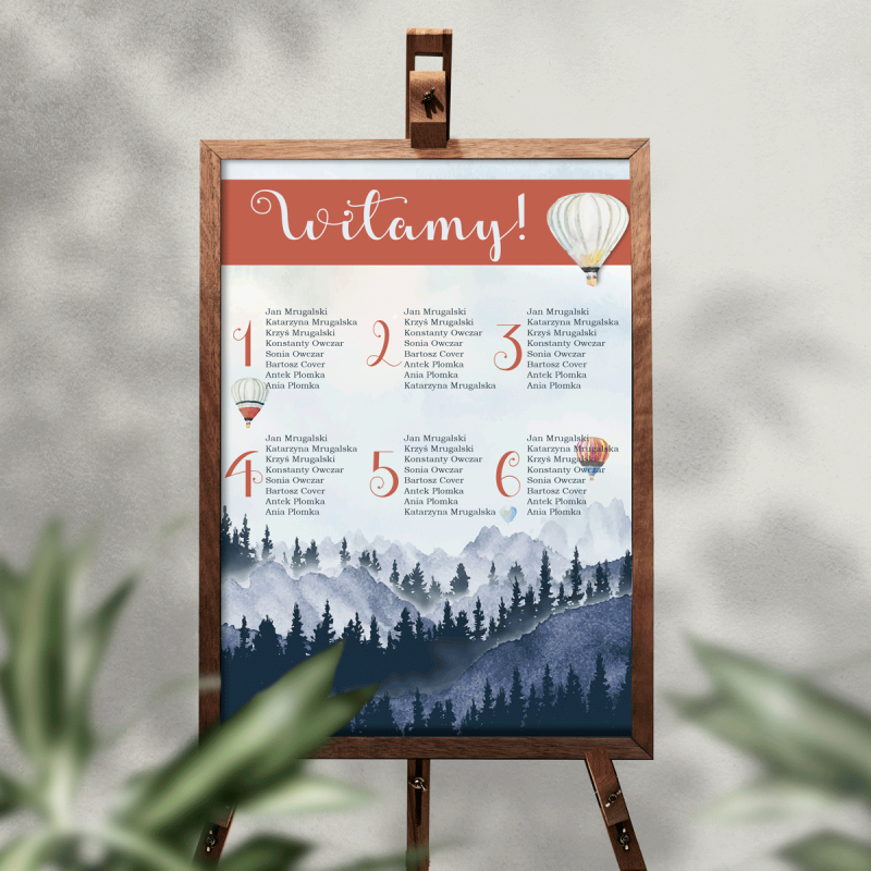 Tablica z rozmieszczeniem stołów na wesele "krajobraz"
