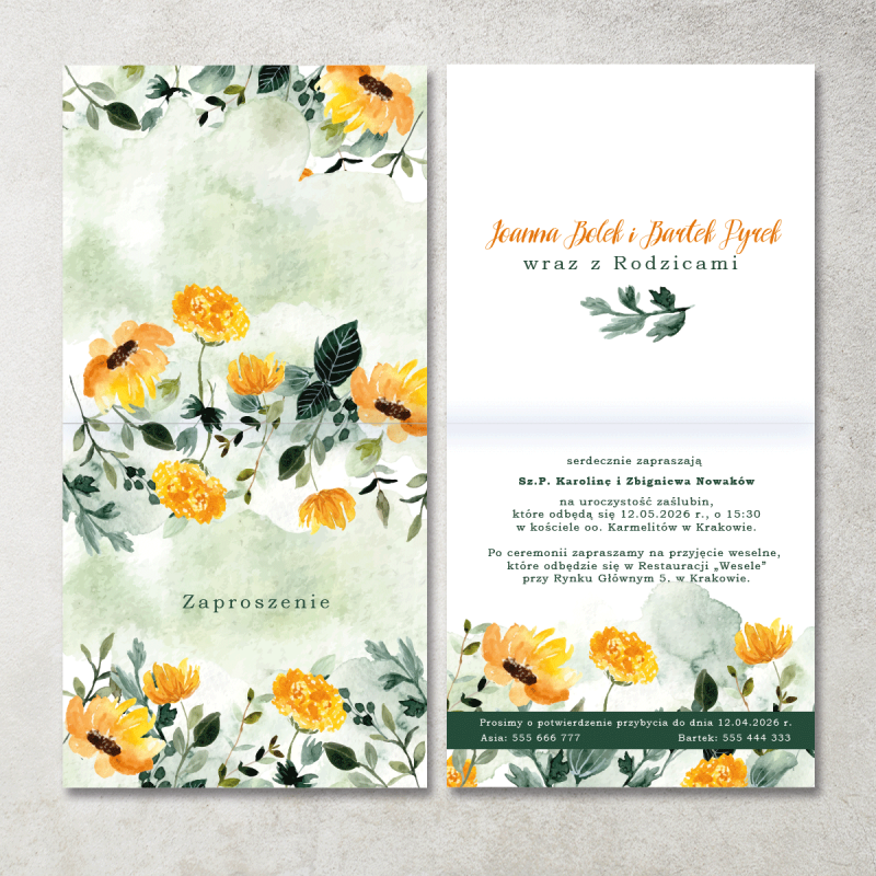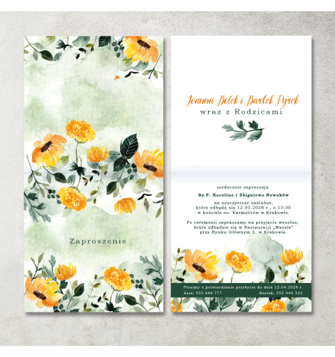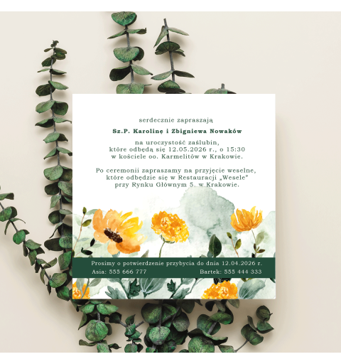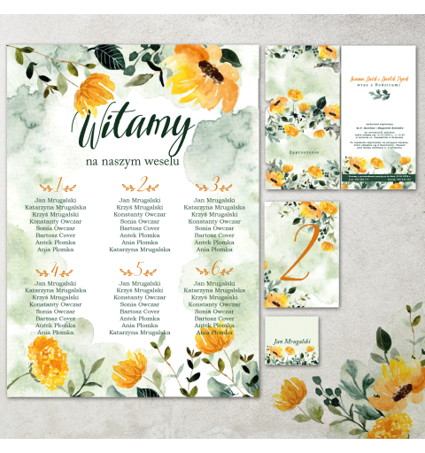 Tablica z rozmieszczeniem stołów na wesele "żółte kwiaty"