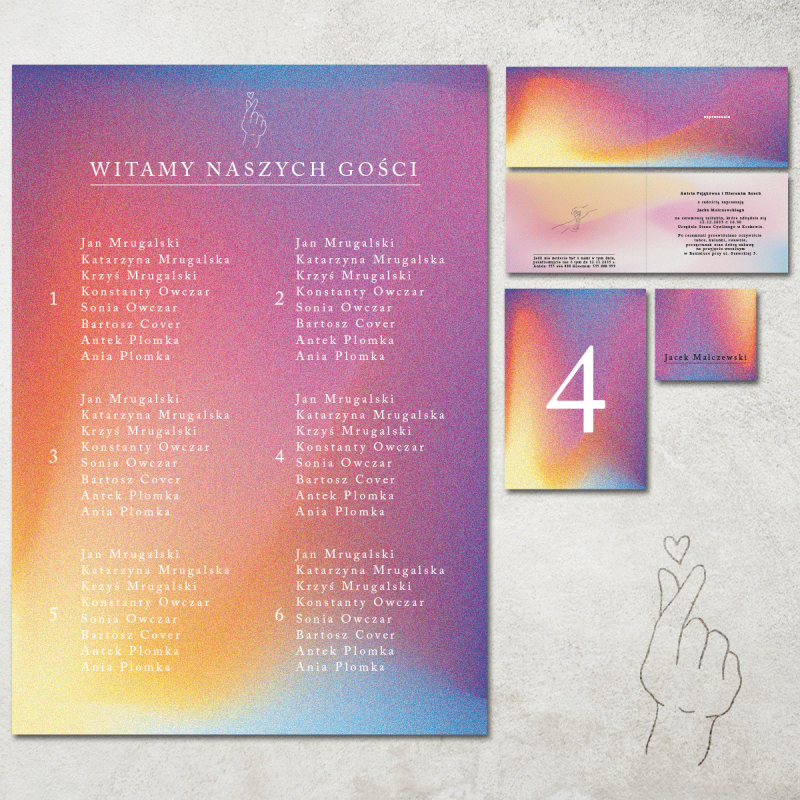 W tej samej stylistyce polecamy również: winietki, zaproszenia, oraz numerki na stoły. Możemy także dostoswoać projekt do innych realizacji które Państwa interesują.