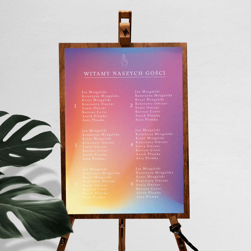 Tablica z rozmieszczeniem stołów na wesele "kolory"