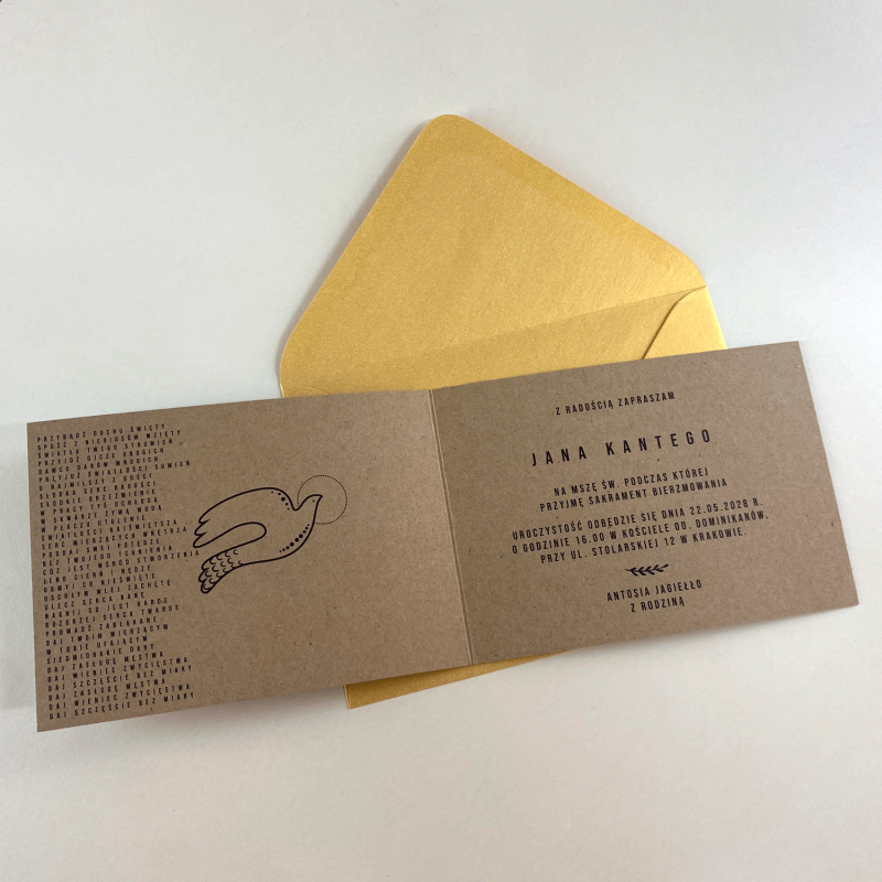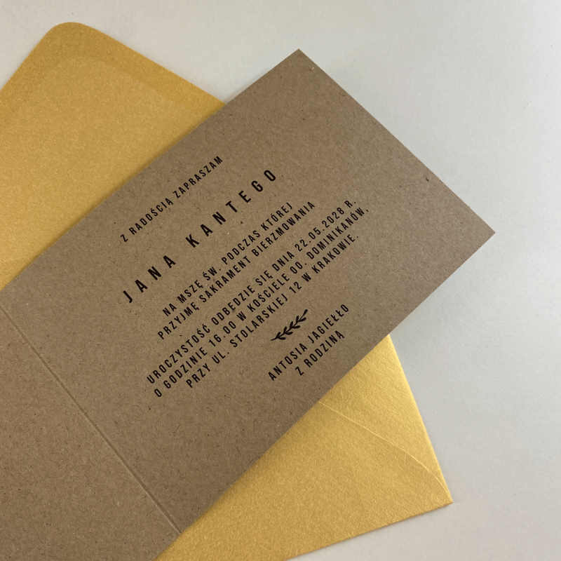 Możliwość personalizacji (wpisania przed drukiem każdego adresata zaproszenia), oraz dokupienia kopert.