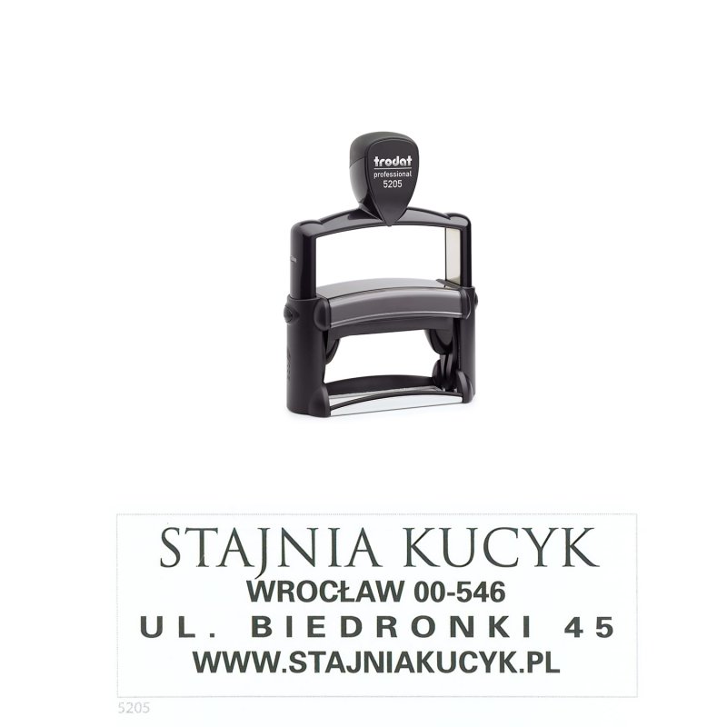 Kompaktowa pieczątka Trodat 4911, kolor losowy. Z gotowym tekstem.